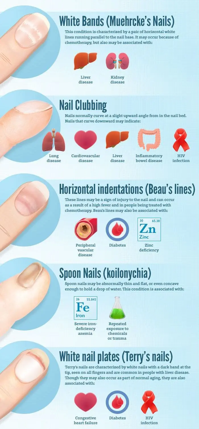 Hands and feet come in all sorts of shapes and sizes, but in general each nail should be a regular symmetrical shape and a smooth peachy-pink color. As we get older they may become thicker and less smooth, but these changes can also be a sign of a problem. So what should you look out for in nails and what action should you take?