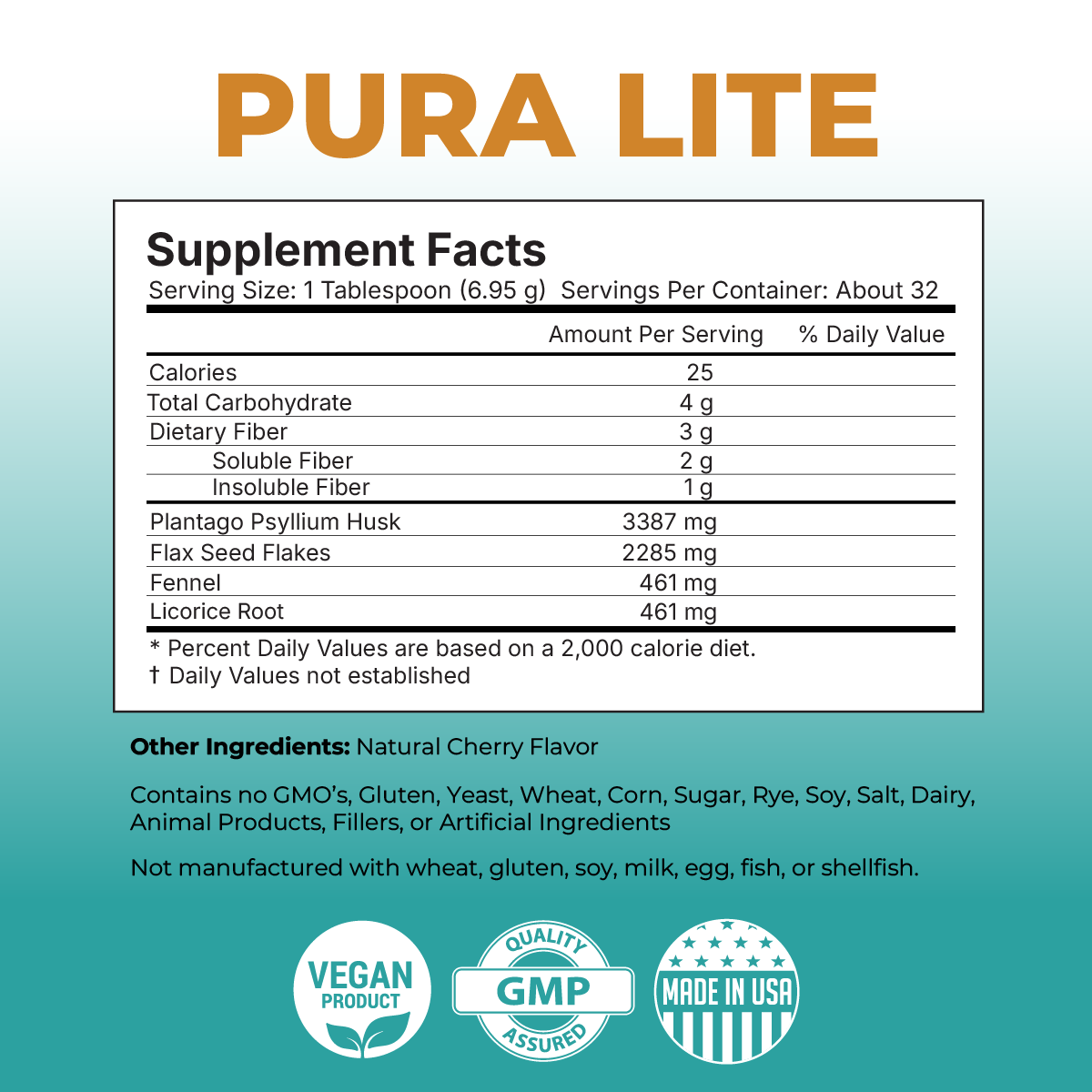 - Find Your Natural Daily Rhythm: With psyllium and flax, Pura Lite supports predictable, healthy bowel movements, helping your body eliminate waste effectively and maintain optimal colon health for a feeling of lightness.*